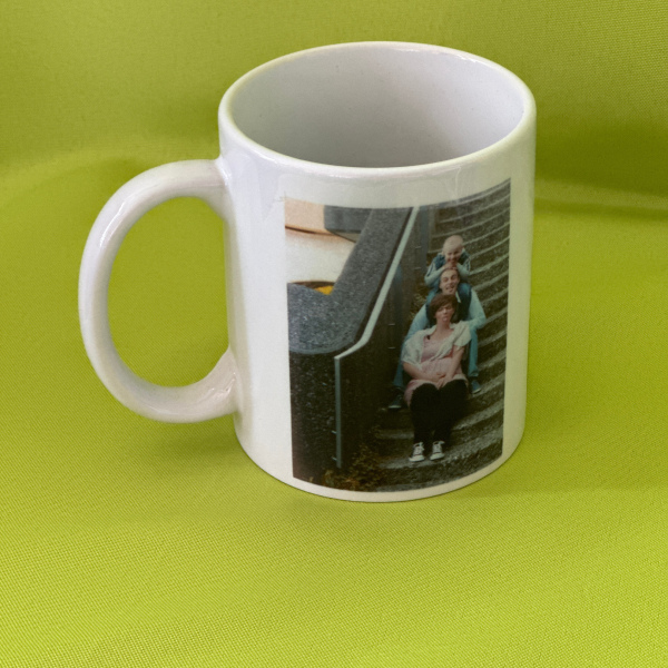 Kaffee oder Teetasse weiss mit wunschmotiv bedruckt.